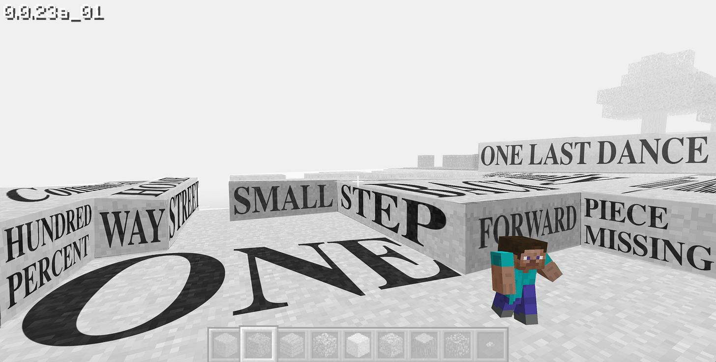 "Here we are in a place called 'One,'" our guide begins. "We’re surrounded by things semantically related to the word ‘One.’ Let’s explore. Over here is ‘Step,’ and just around the corner, ‘Forward’—that’s One Step Forward for us." Then the guide gestures to another path. "Following this route, we find 'Piece' and then 'Missing.' And look there, 'Last' and just beyond, 'Dance.' Anyone up for One Last Dance?" our guide jokes, inviting us further into this world of words.